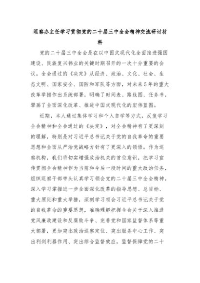 【七哥公文】2024年:巡察办主任学习贯彻党的二十届三中全会精神交流研讨材料+更多免费公文+VX:QiGeGongWen2024