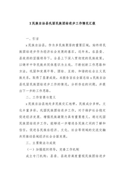 / 【七哥公文】2024年:X民族自治县巩固民族团结进步工作情况汇报+更多免费公文+VX:QiGeGongWen2024