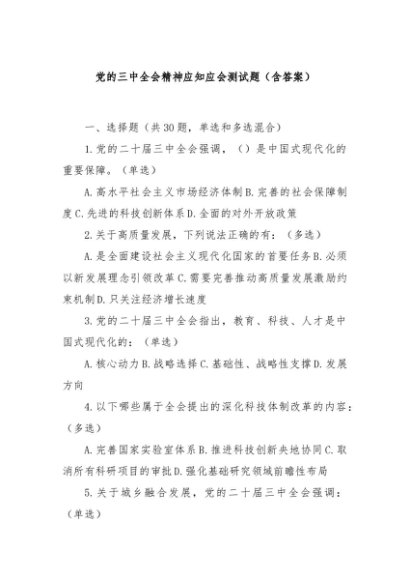 / 【七哥公文】2024年:党的三中全会精神应知应会测试题(含答案)+更多免费公文+VX:QiGeGongWen2024