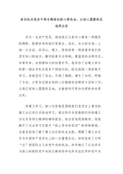 【七哥公文】2024年:参加机关党务干部专题培训班心得体会:从初心盟誓的圣地再出发+更多免费公文+VX:QiGeGongWen2024