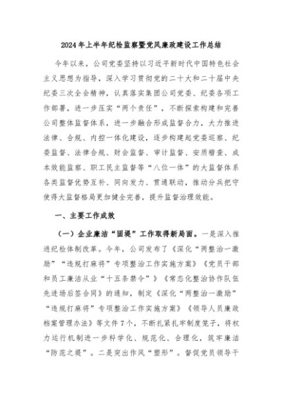 / 【七哥公文】2024年:2024年上半年纪检监察暨党风廉政建设工作总结+更多免费公文+VX:QiGeGongWen2024