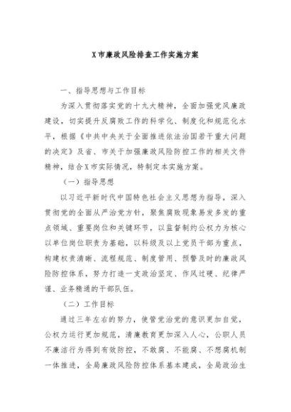 【七哥公文】2024年:X市廉政风险排查工作实施方案+更多免费公文+VX:QiGeGongWen2024