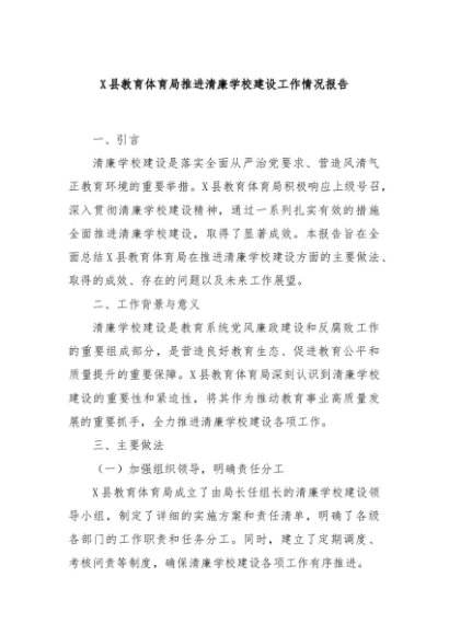/ 【七哥公文】2024年:X县教育体育局推进清廉学校建设工作情况报告+更多免费公文+VX:QiGeGongWen2024