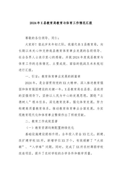 / 【七哥公文】2024年:2024年X县教育局教育与体育工作情况汇报+更多免费公文+VX:QiGeGongWen2024