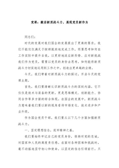 / 【七哥公文】2024年:党课:激活新质战斗力,展现党员新作为+更多免费公文+VX:QiGeGongWen2024