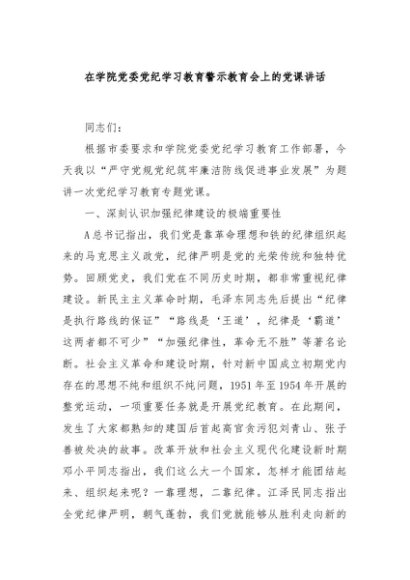 / 【七哥公文】2024年:在学院党委党纪学习教育警示教育会上的党课讲话+更多免费公文+VX:QiGeGongWen2024