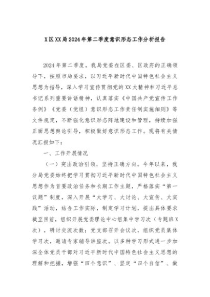 / 【七哥公文】2024年:X区XX局2024年第二季度意识形态工作分析报告+更多免费公文+VX:QiGeGongWen2024