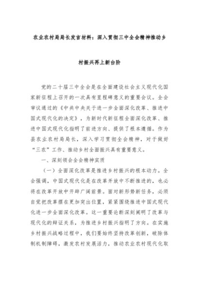 【七哥公文】2024年:农业农村局局长发言材料:深入贯彻三中全会精神推动乡村振兴再上新台阶+更多免费公文+VX:QiGeGongWen2024