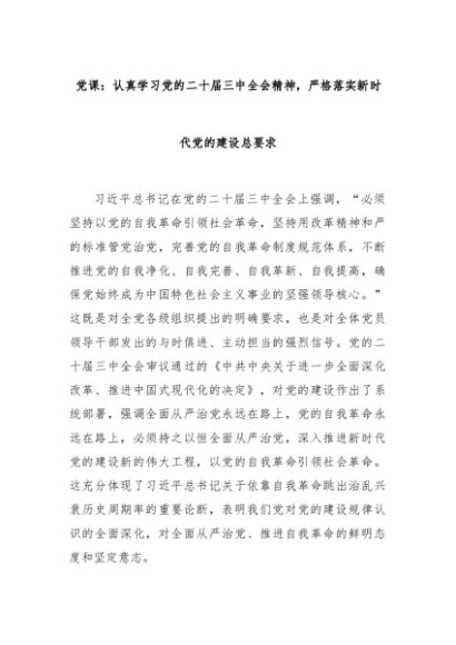 【七哥公文】2024年:党课:认真学习党的二十届三中全会精神,严格落实新时代党的建设总要求+更多免费公文+VX:QiGeGongWen2024