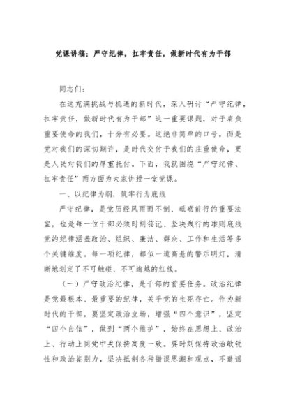 / 【七哥公文】2024年:党课讲稿:严守纪律,扛牢责任,做新时代有为干部+更多免费公文+VX:QiGeGongWen2024