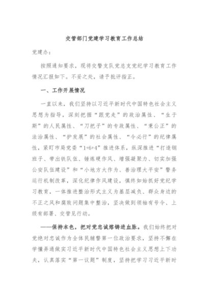 【七哥公文】2024年:交管部门党建学习教育工作总结+更多免费公文+VX:QiGeGongWen2024