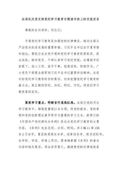 / 【七哥公文】2024年:在局机关党支部党纪学习教育专题读书班上的交流发言+更多免费公文+VX:QiGeGongWen2024