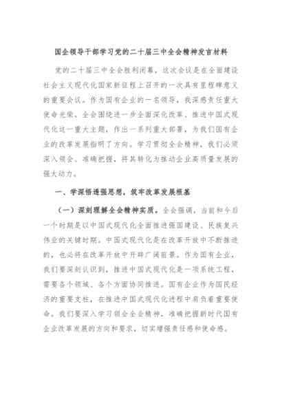 / 【七哥公文】2024年:国企领导干部学习党的二十届三中全会精神发言材料+更多免费公文+VX:QiGeGongWen2024