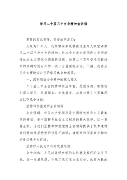 / 【七哥公文】2024年:学习二十届三中全会精神宣讲稿+更多免费公文+VX:QiGeGongWen2024