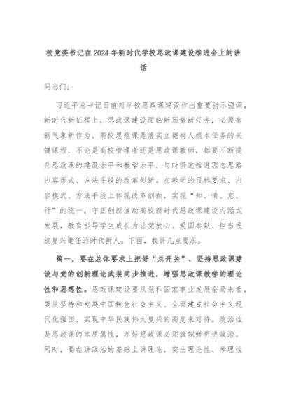 【七哥公文】2024年:校党委书记在2024年新时代学校思政课建设推进会上的讲话+更多免费公文+VX:QiGeGongWen2024