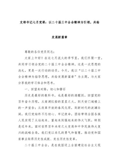 【七哥公文】2024年:支部书记七月党课:以二十届三中全会精神为引领,共绘发展新篇章+更多免费公文+VX:QiGeGongWen2024
