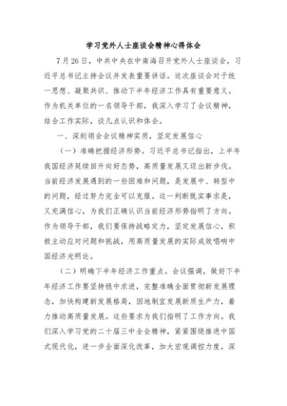 【七哥公文】2024年:学习党外人士座谈会精神心得体会+更多免费公文+VX:QiGeGongWen2024