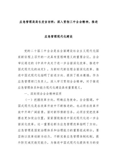 【七哥公文】2024年:应急管理局局长发言材料:深入贯彻三中全会精神,推进应急管理现代化建设+更多免费公文+VX:QiGeGongWen2024