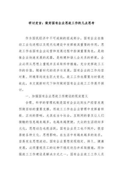 / 【七哥公文】2024年:研讨发言:做好国有企业思政工作的几点思考+更多免费公文+VX:QiGeGongWen2024