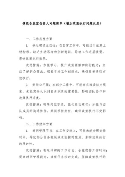 【七哥公文】2024年:镇级各股室负责人问题清单(增加政策执行问题反思)+更多免费公文+VX:QiGeGongWen2024