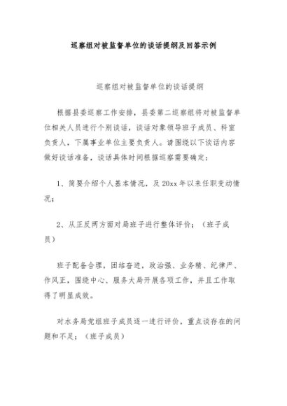 / 【七哥公文】2024年:巡察组对被监督单位的谈话提纲及回答示例+更多免费公文+VX:QiGeGongWen2024