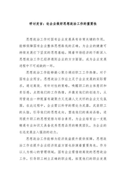 / 【七哥公文】2024年:研讨发言:论企业做好思想政治工作的重要性+更多免费公文+VX:QiGeGongWen2024