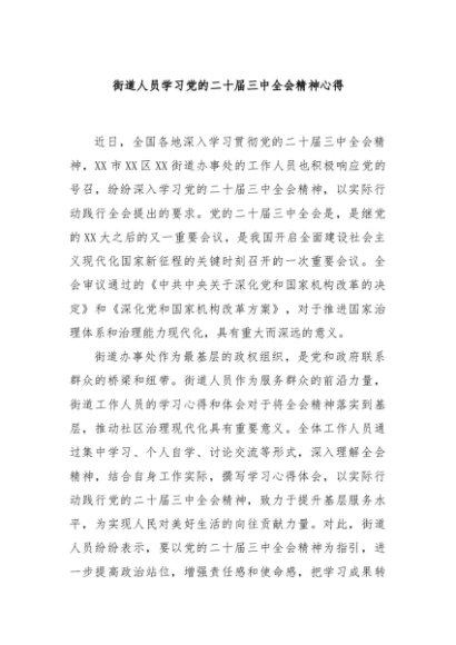 / 【七哥公文】2024年:街道人员学习党的二十届三中全会精神心得+更多免费公文+VX:QiGeGongWen2024