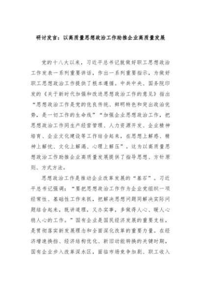 / 【七哥公文】2024年:研讨发言:以高质量思想政治工作助推企业高质量发展+更多免费公文+VX:QiGeGongWen2024