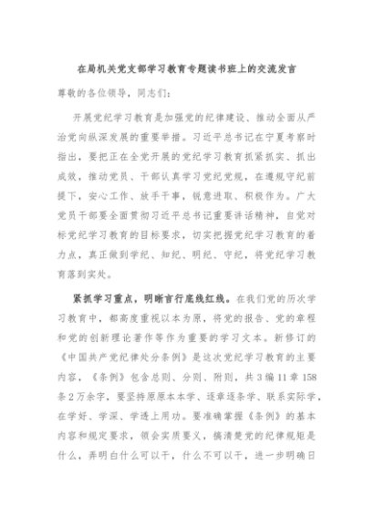 / 【七哥公文】2024年:在局机关党支部学习教育专题读书班上的交流发言+更多免费公文+VX:QiGeGongWen2024