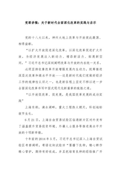 / 【七哥公文】2024年:党课讲稿:关于新时代全面深化改革的实践与启示+更多免费公文+VX:QiGeGongWen2024