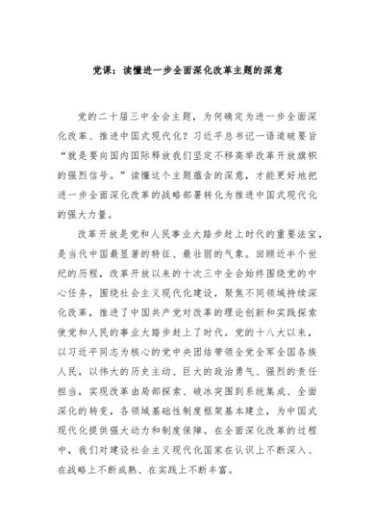 / 【七哥公文】2024年:党课:读懂进一步全面深化改革主题的深意+更多免费公文+VX:QiGeGongWen2024