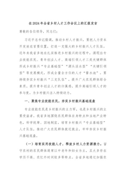 / 【七哥公文】2024年:在2024年全省乡村人才工作会议上的汇报发言+更多免费公文+VX:QiGeGongWen2024