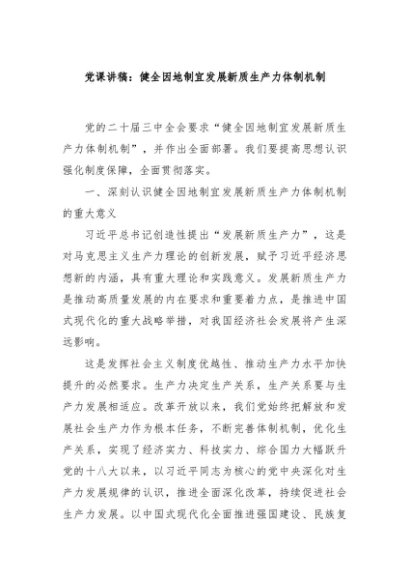 / 【七哥公文】2024年:党课讲稿:健全因地制宜发展新质生产力体制机制+更多免费公文+VX:QiGeGongWen2024