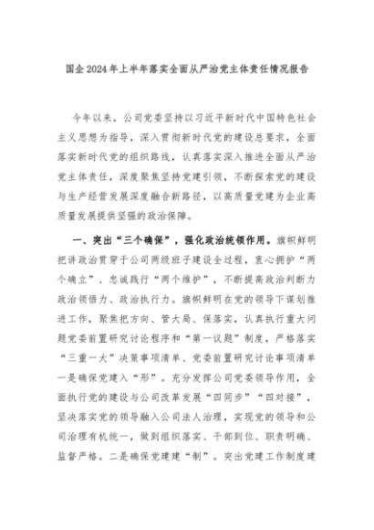【七哥公文】2024年:国企2024年上半年落实全面从严治党主体责任情况报告+更多免费公文+VX:QiGeGongWen2024