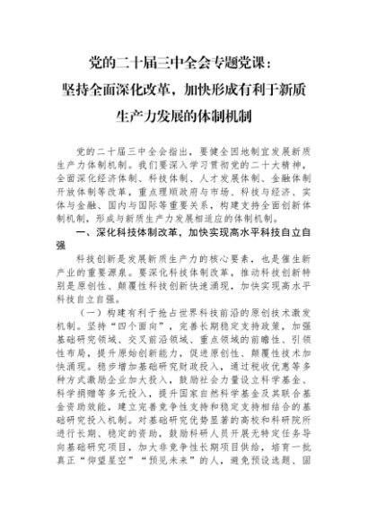 【七哥公文】2024年:党的二十届三中全会专题党课:坚持全面深化改革,加快形成有利于新质生产力发展的体制机制+更多免费公文+VX:QiGeGongWen2024