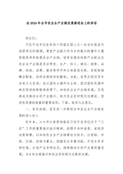 / 【七哥公文】2024年:在2024年全市农业全产业链发展推进会上的讲话+更多免费公文+VX:QiGeGongWen2024