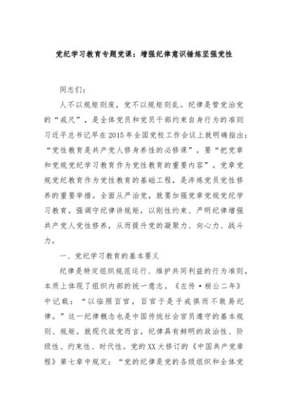 / 【七哥公文】2024年:党纪学习教育专题党课:增强纪律意识锤炼坚强党性+更多免费公文+VX:QiGeGongWen2024