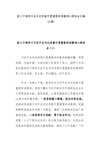 【七哥公文】2024年:(2篇)组工干部学习总书记考察宁夏重要讲话精神心得体会汇编+更多免费公文+VX:QiGeGongWen2024