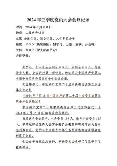 / 【七哥公文】2024年:2024年三季度党员大会会议记录(8月版)+更多免费公文+VX:QiGeGongWen2024
