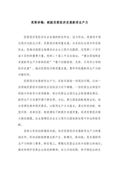 / 【七哥公文】2024年:党课讲稿:赋能民营经济发展新质生产力+更多免费公文+VX:QiGeGongWen2024