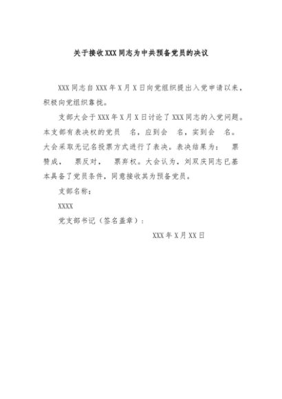 【七哥公文】2024年:关于接收XXX同志为中共预备党员的决议+更多免费公文+VX:QiGeGongWen2024
