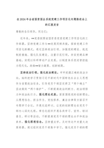 【七哥公文】2024年:在2024年全省国资国企系统党建工作项目化专题推进会上的汇报发言+更多免费公文+VX:QiGeGongWen2024