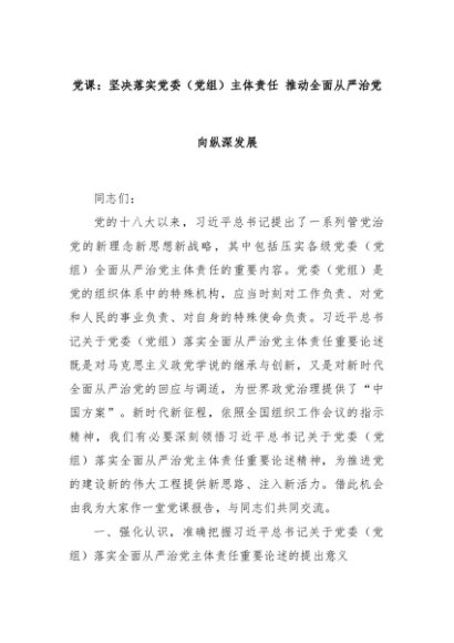 【七哥公文】2024年:党课:坚决落实党委(党组)主体责任 推动全面从严治党向纵深发展+更多免费公文+VX:QiGeGongWen2024