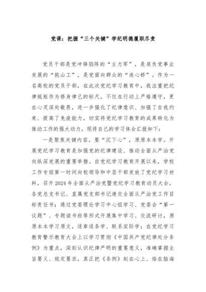 / 【七哥公文】2024年:党课:把握“三个关键”学纪明德履职尽责+更多免费公文+VX:QiGeGongWen2024