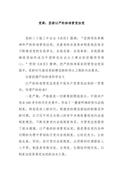 【七哥公文】2024年:党课:坚持以严的标准管党治党+更多免费公文+VX:QiGeGongWen2024