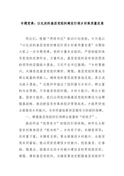 【七哥公文】2024年:专题党课:以扎实的基层党组织建设引领乡村高质量发展+更多免费公文+VX:QiGeGongWen2024