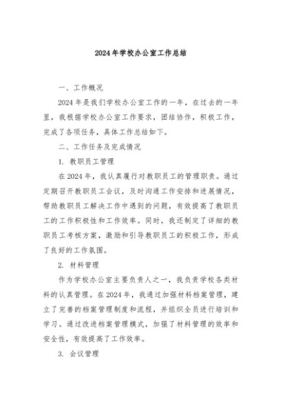 / 【七哥公文】2024年:2024年学校办公室工作总结+更多免费公文+VX:QiGeGongWen2024