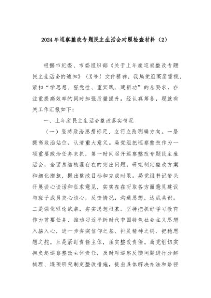 【七哥公文】2024年:2024年巡察整改专题民主生活会对照检查材料(2)+更多免费公文+VX:QiGeGongWen2024