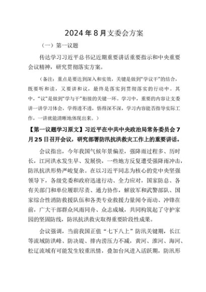 / 【七哥公文】2024年:2024年8月支委会方案+更多免费公文+VX:QiGeGongWen2024