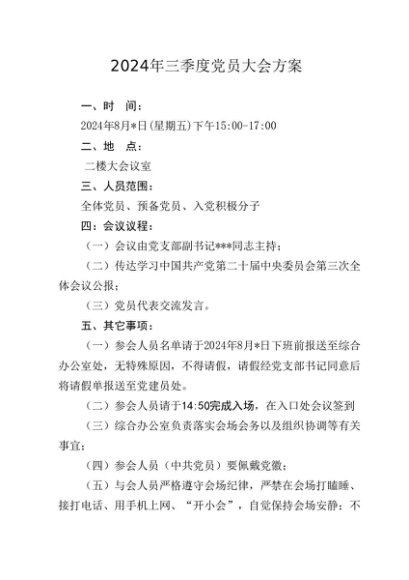 / 【七哥公文】2024年:2024年三季度党员大会方案(8月版)+更多免费公文+VX:QiGeGongWen2024